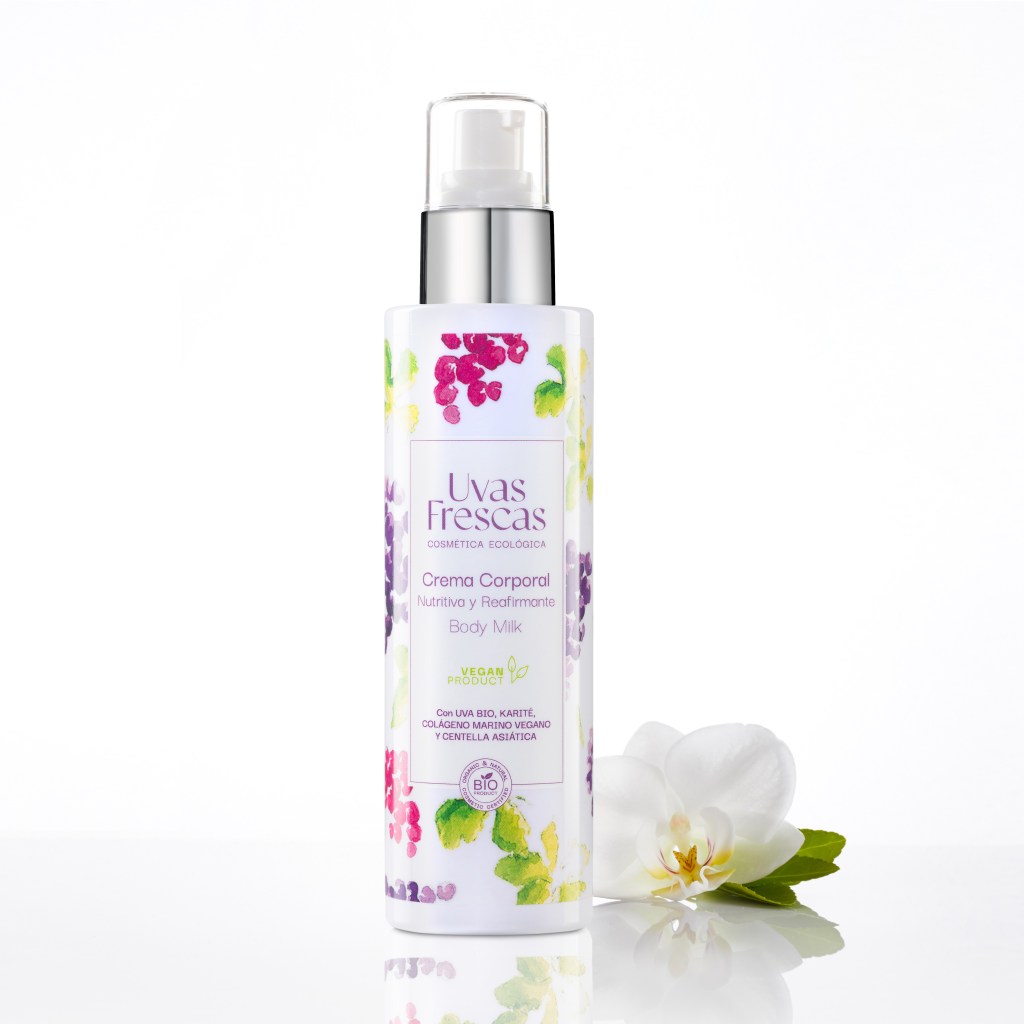 Hidrata tu cuerpo con la crema hidratante corporal de Uvas Frescas, que contiene manteca de karité, colágeno marino de origen vegetal y aceite de uva y jojoba. Nutre de manera inmediata y duradera, aportando elasticidad, firmeza y suavidad a la piel. Nos ayuda a prevenir el envejecimiento gracias a los activos antioxidantes del aceite de vid roja. Es de rápida absorción.