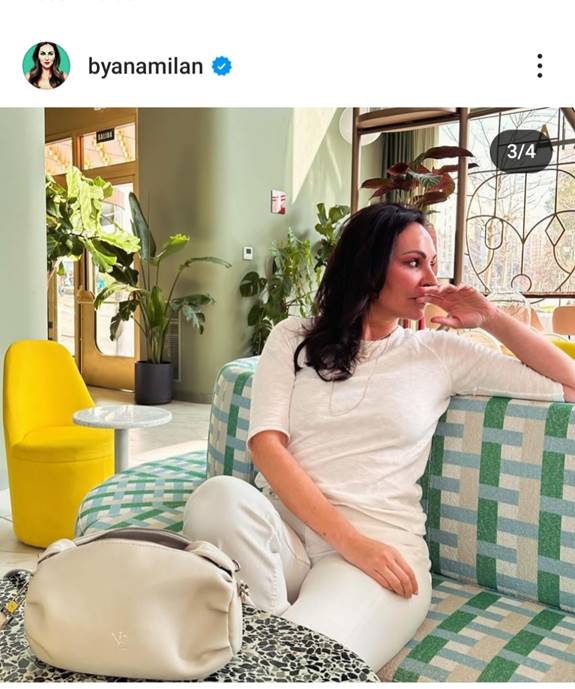 La actriz Ana Milán ha compartido unas instantáneas en sus redes sociales donde ha presumido de look y, concretamente de bolso. Se trata del modelo Caramelo de la firma de marroquinería vasca Naiara Elgarresta.