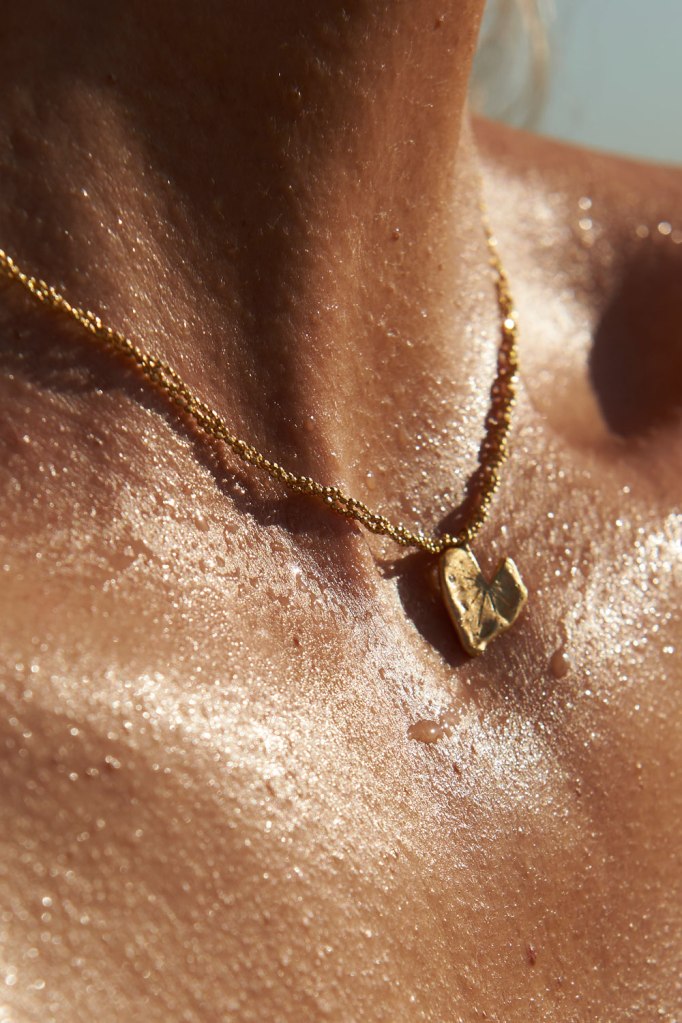 El collar Venus amulet diamond es un colgante de cadena personalizada y exclusiva Sarah Jewels en oro amarillo 18k con un corazón con efecto mate e irregular con grabado solar y un diamante. La medida de la cadena es de 42-45cm (lleva varias arandelas para poder ajustar a tu cuello).