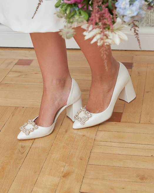 Para las amantes de la serie Sexo en NY, los salones Audrey 5 pearl están hechos con fino cuero en color perla y llevan un clip con cristales enjoyados en la parte frontal que nos recuerda a los famosos Manolos. Su tacón en bloque está disponible en distintas alturas, de 5 y 8 centímetros, y son perfectos para bailar toda la noche. Son uno de los modelos más especiales de la marca y favoritos de muchas novias.