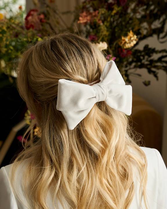 Esta marca atelier también te viste de los pies a la cabeza con su nueva colección de lazos para el pelo y sus cintas para el ramo a juego con los zapatos. Hay lazos disponibles en distintos materiales y colores, hechos a mano con fino terciopelo y pasador francés. Elegantes y románticos a partes iguales.