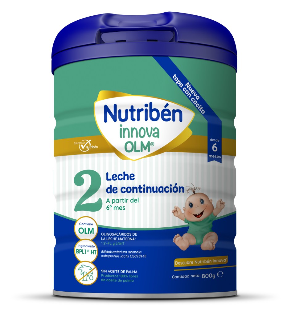 En bebés alimentados con leche de fórmula, es importante priorizar en preparados enriquecidos con probióticos, como Nutribén Innova, con una exclusiva formulación enriquecida con hierro que favorece el desarrollo cognitivo, vitaminas A, C y D, que contribuyen al normal funcionamiento del sistema inmune, oligosacáridos presentes en la leche materna y α-lactoalbúmina, proteína mayoritaria de la leche materna.