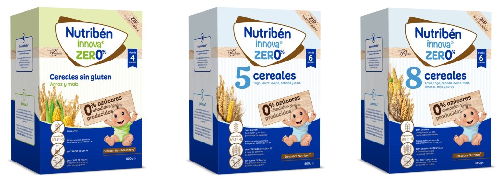 Una firma como Nutribén, que ya conocían nuestras madres y abuelas, es garantía de seguridad. También en cuanto a sus cereales, los nuevos Nutribén Innova Zero sin azúcares añadidos ni producidos. Son los únicos cereales del mercado con el posbiótico *BPL1, reconocido por la OMS, EFSA y FDA, fuente de hierro, fibra, calcio, fósforo y 11 vitaminas, ideales para preparar en biberón, en plato o añadir en recetas de BLW como albóndigas, tortitas, etc.