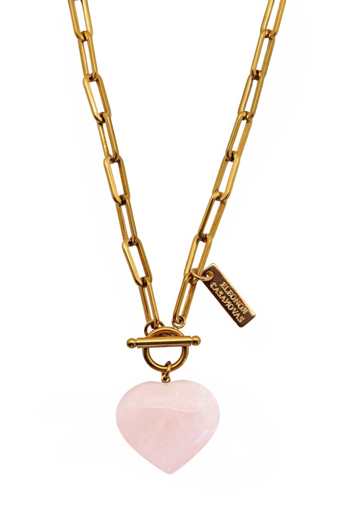 El collar Addicted to you de Eleonor de Casanovas con corazón de cuarzo rosa para que sepa que eres adicta ella: