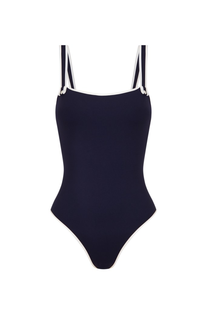 El traje de baño Ola de Mur swimwear en color azul marino y vivos blancos es sinónimo de elegancia pura y dura: