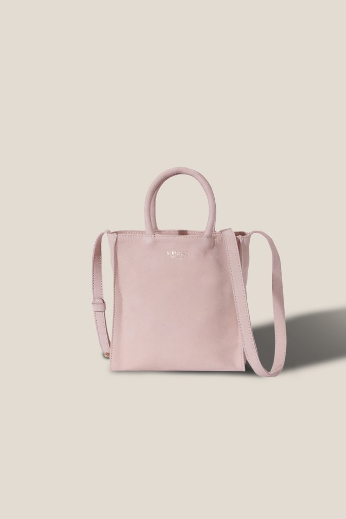 Un mini tote bag versátil como Sophie rosa de SUR SAC. Un bolso que también puedes llevar de bandolera:
