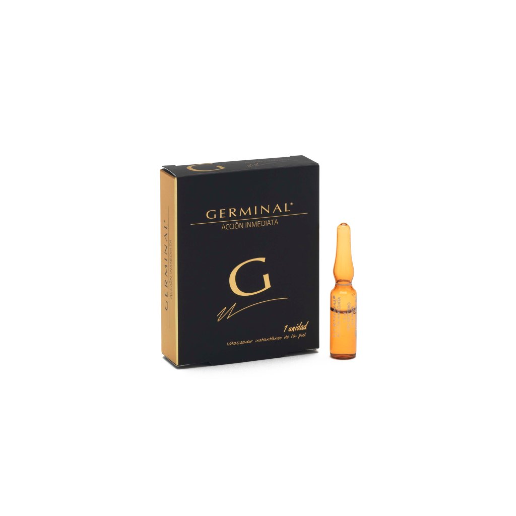 GERMINAL ACCIÓN INMEDIATA. Una ampolla que aporta vitalidad a la piel, eliminando cualquier rastro de fatiga. Tras los excesos, la piel apagada, seca y sin luminosidad vuelve a lucir un aspecto sano natural y en tan solo 30 segundos. Además, ayuda a recuperar el equilibrio de la piel y retrasa el envejecimiento cutáneo gracias al extracto de ginseng y a las proteínas de maíz. PVP: 4,75 €