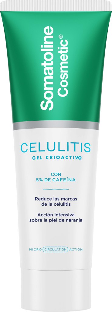 - CELULITIS GEL CRIOACTIVO de Somatoline Cosmetic: tratamiento específicamente formulado para combatir los signos de la celulitis. Su fórmula de gel crioactivo está enriquecida con principios activos específicos como el 5% de cafeína, el extracto de maca y extracto de physalis angulata. Además, se absorbe fácilmente y está recomendado para mujeres con celulitis en muslos, con varices y/o arañas vasculares. PVP: 39.90€
