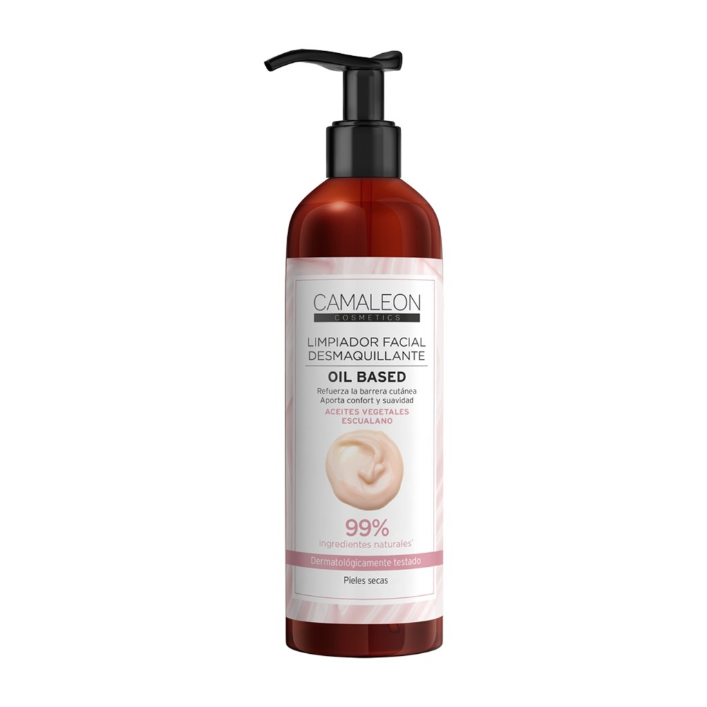 Los limpiadores desmaquillantes con base aceite son los productos más eficaces para el primer paso de la rutina de limpieza, ya que se elimina toda la suciedad acumulada en el rostro. El limpiador Oil Based de Camaleon Cosmetics con textura oleo-gel, está formulado para eliminar en profundidad el maquillaje y las impurezas con una mezcla de aceites vegetales muy afines a la piel que ayudan a eliminar de manera eficaz todas las impurezas sin resecarla ni irritarla. No contiene sulfatos, tensoactivos ni siliconas y tiene un 99% de ingredientes naturales, ayudando a mantener el equilibrio natural de tu piel. Entre sus aceites destacan: