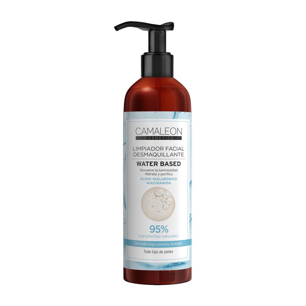 El limpiador facial desmaquillante en base agua de Camaleon Cosmetics retira suciedad e impurezas aportando un extra de hidratación y devolviendo la luminosidad a tu piel, con un 95% de ingredientes naturales. La espuma la mayoría de las veces está asociada a jabón e irritación, en este caso este limpiador desmaquillante con ingredientes calmantes e hidratantes no solo no reseca la piel, sino que incluso la mantiene más hidratada, más suave y con la textura más uniforme. Gracias a su formulación conseguirás limpiar y desmaquillar tu piel sin irritarla consiguiendo devolverle luminosidad. Mejorando la rutina de limpieza en poco tiempo verás tu piel suave y con un extra de hidratación. Puedes utilizarlo solo, pero lo ideal es que sea segundo paso de tu rutina completa de limpieza. El limpiador facial Water Based contiene: