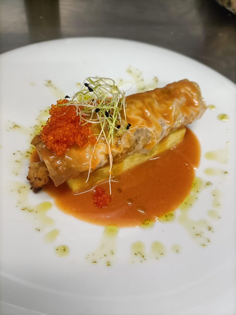 Por su parte, Rosa Elena Mateo Camacho, chef del restaurante El Buche, situado en Fuerte Conil Resorts, que en los últimos años se ha convertido en uno de los mejores restaurantes especializado en atún rojo de Conil, ha optado por una propuesta deliciosa y vistosa a la vez: “Canelón gaditano de corval negro bañado en visque de marisco clásico”.