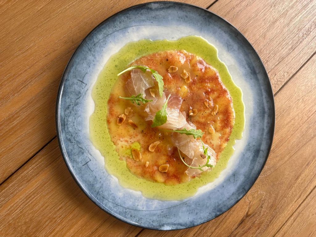 Por eso, el chef Juan Francisco Benítez Almazo no ha dudado en participar en estas jornadas gastronómicas presentando un exquisito plato que conecta profundamente con su entorno mediterráneo: Semicurado de corval negro sobre carpaccio de higos y vinagreta de hoja de “higuera”.