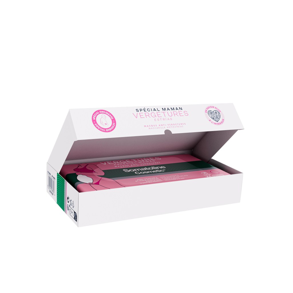 En concreto, la Mascarilla Antiestrías Especial Mamás es el producto más novedoso de la gama, específica para la forma redondeada del vientre durante el embarazo, que envuelve delicadamente la tripa de las embarazadas para un tratamiento antiestrías agradable, eficaz y seguro.