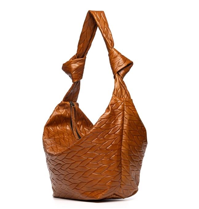 Oslo es un diseño de la firma de Almería MONA MOON. Un bolso Hobo para colgar al hombro, amplio y muy ligero, realizado en piel grabada suave y blandita. El bolso se cierra con cremallera metálica. Tiene una correa ancha preciosa y perfecta para el hombro acabada en dos grandes nudos. Está forrado en su interior con tejido de microfibra suave y contiene un bolsillo amplio cerrado con cremallera metálica. Fácil de combinar con cualquier look y práctico por su capacidad interior, es un bolso perfecto para el día a día. Como en todos los diseños de la marca la ligereza está presente.