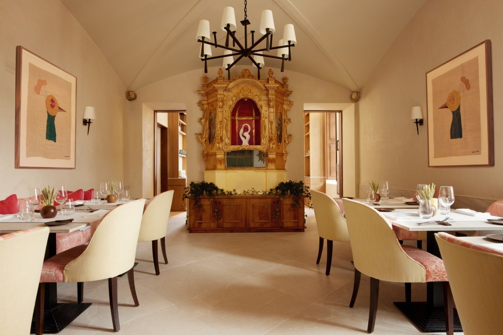 Otro de los aspectos más valorados del restaurante Sa Terrassa es su versatilidad, ya que permite acoger a comensales en su preciosa sala interior, cuyo interiorismo respeta los cánones de la arquitectura tradicional mallorquina con vigas de madera, arcos de piedra y un antiguo retablo que perteneció a la antigua capilla de esta emblemática finca histórica; así como en su espectacular terraza con vistas al mar y a la montaña.