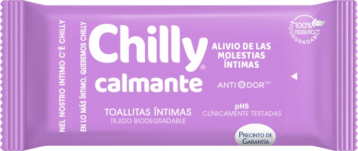 • CHILLY CALMANTE: el último lanzamiento de la marca. Están enriquecidas con Bisabolol, un agente dermocalmante que proporciona una agradable sensación de alivio de las pequeñas molestias íntimas diarias como el ardor y el picor, evitando así irritaciones y enrojecimientos.