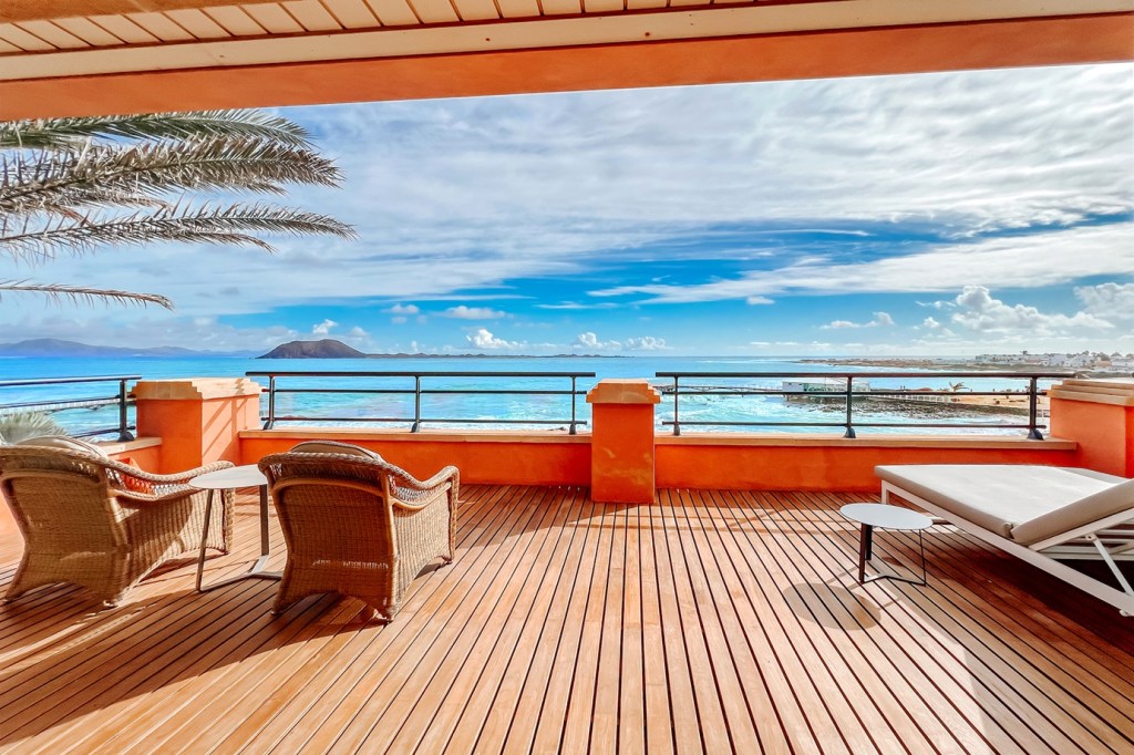 Otra buena idea para poner la guinda a un año extraordinario puede ser alojarte en la habitación 403 (Penthouse Preferred) de este emblemático hotel de Fuerteventura, que ha servido de refugio a actores de la talla de Brad Pitt, Gal Gadot y Christian Bale durante los rodajes que han realizado en la isla. Mide 168 m2 y cuenta con una espectacular terraza con vistas a las islas de Lobo y Lanzarote. Si lo deseas, tras la cena y antes del fin de fiesta podrás hacer un receso en ella a las 23:00 para llamar a tu familia y tomarte las preúvas mirando el mar una hora antes del Fin de Año.